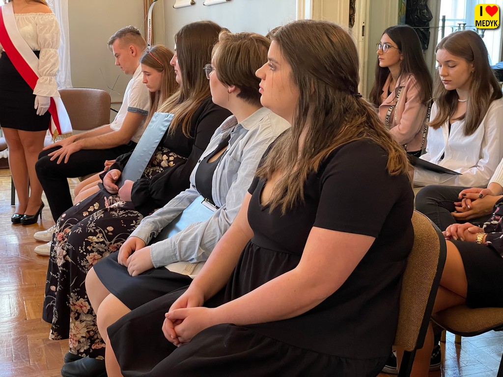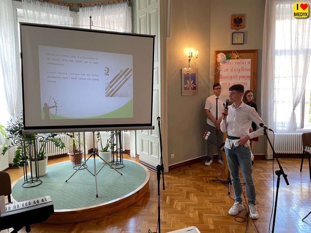 Tak się składa, że mamy w naszym Medyku przyszłych ortopedów czy masażystów, którzy pięknie śpiewają, grają, tańczą i osiągają sukcesy sportowe w różnych dziedzinach. Często mijamy ich na korytarzach, nie wiedząc, że to są mistrzowie powiatu, województwa czy kraju. Podczas apelu kilkoro z nich zaprezentowało próbki swoich umiejętności lub opowiadało o nich. Zostali nagrodzeni gromkimi brawami.