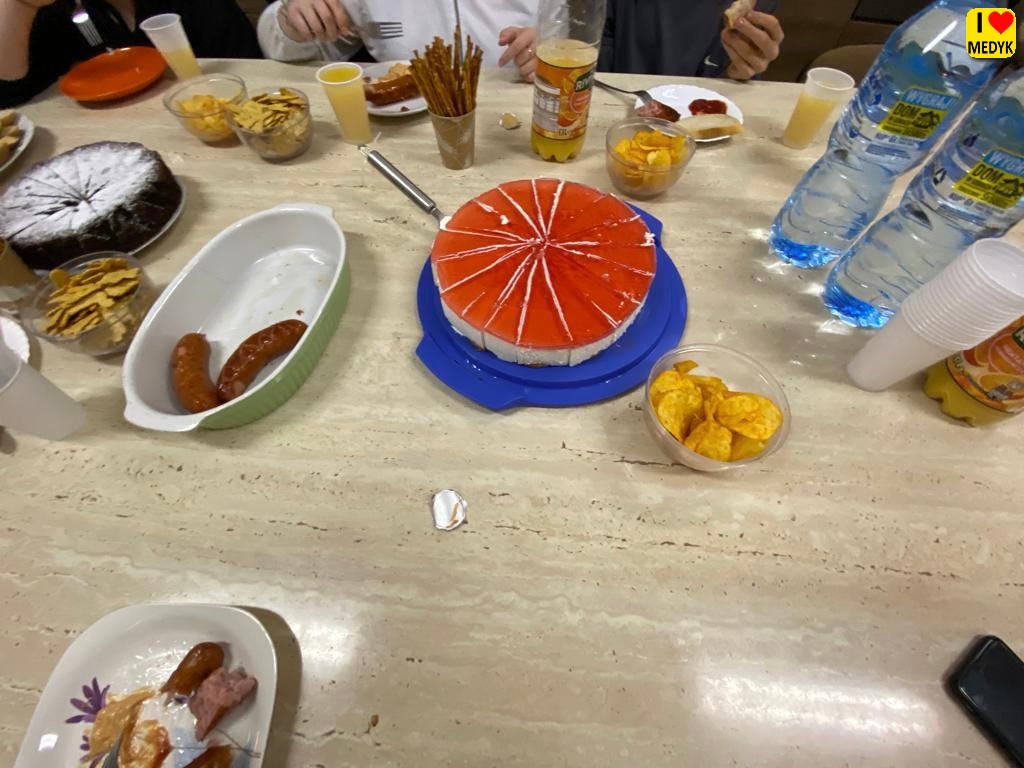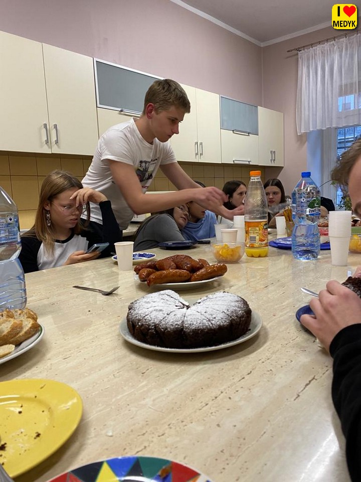 Przygotowano smaczną kolację (kiełbaski, ciasto, owoce, słodycze), a pani Luba z Ukrainy przyrządziła smaczne ukraińskie danie (pierożki z kapustą z ciasta drożdżowego).